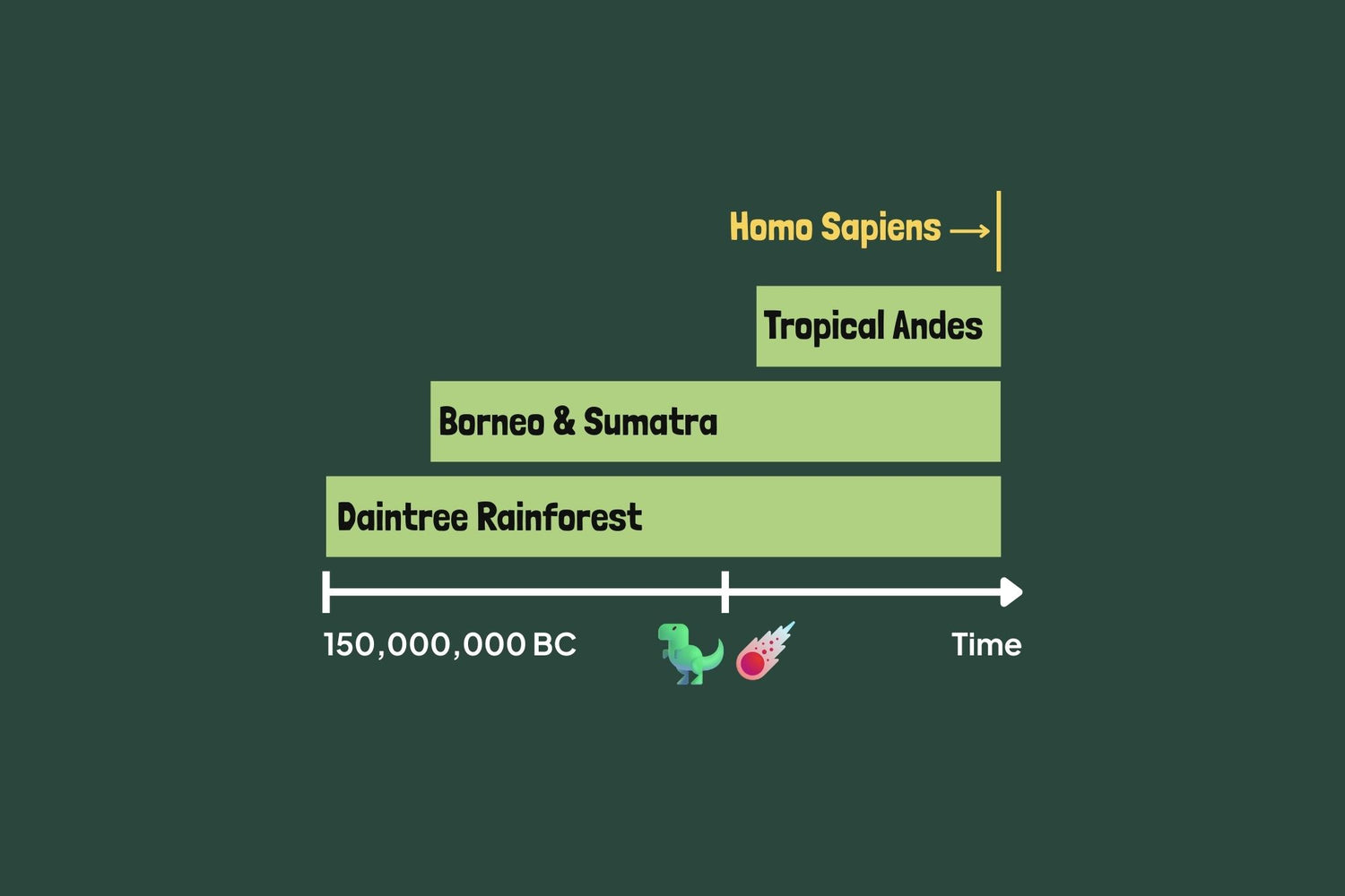 Born 140 million years, making it one of the oldest ecosystems on Earth. The Island jungles position near the equator and unique terrain created stable refuges during ice ages.