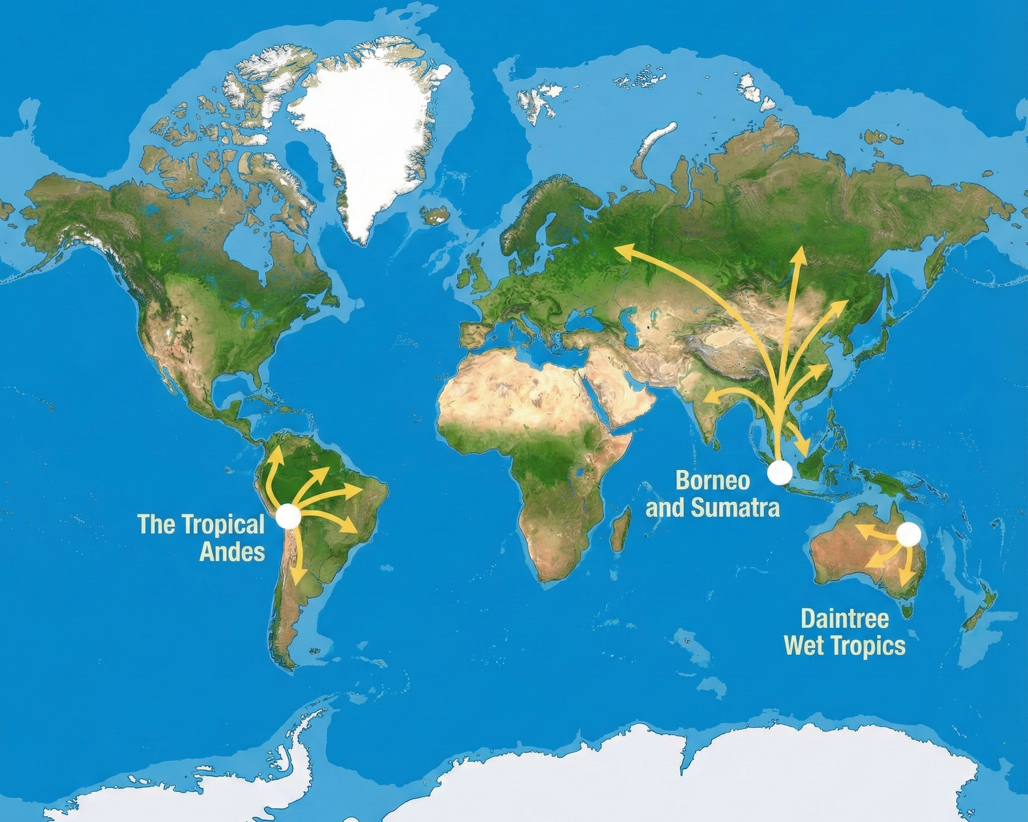 The Daintree has persisted for over 150 million years. The Great Dividing Range traps moisture, protecting it through past ice ages and acting as a home for ancient biodiversities.