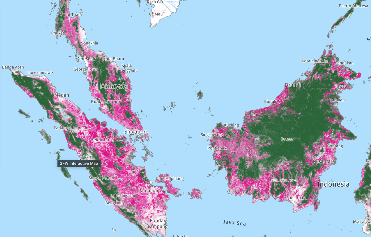 Around 92% of primary forest has been lost, mainly to palm oil, pulpwood, logging, and mining. Continued deforesting threatens the last refugia that sustain regional biodiversity.