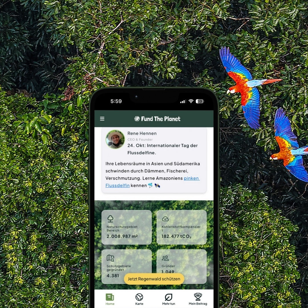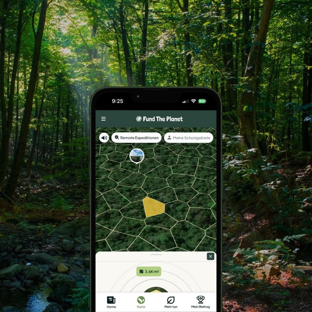 Ein Euro bei Fund The Planet wird vollständig für den Schutz bedrohter Regenwaldflächen eingesetzt. Dabei fließen 51 Cent direkt in Maßnahmen zum aktiven Naturschutz auf dem dedizierten Gebiet des Kunden , 30 Cent werden genutzt, um weiteres Land zu erwerben und langfristig zu sichern. Der Rest verteilt sich auf wichtige unterstützende Aufgaben wie Management (10 Cent), Kauf (4,5 Cent), Bildung & Aufmerksamkeit (2,5 Cent), Gebühren & Steuern (1 Cent) und Landsuche (1 Cent). Jeder Cent trägt so gezielt dazu bei, den Regenwald dauerhaft zu erhalten – transparent, nachvollziehbar und ohne Kompromisse.